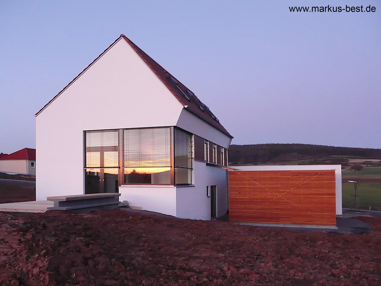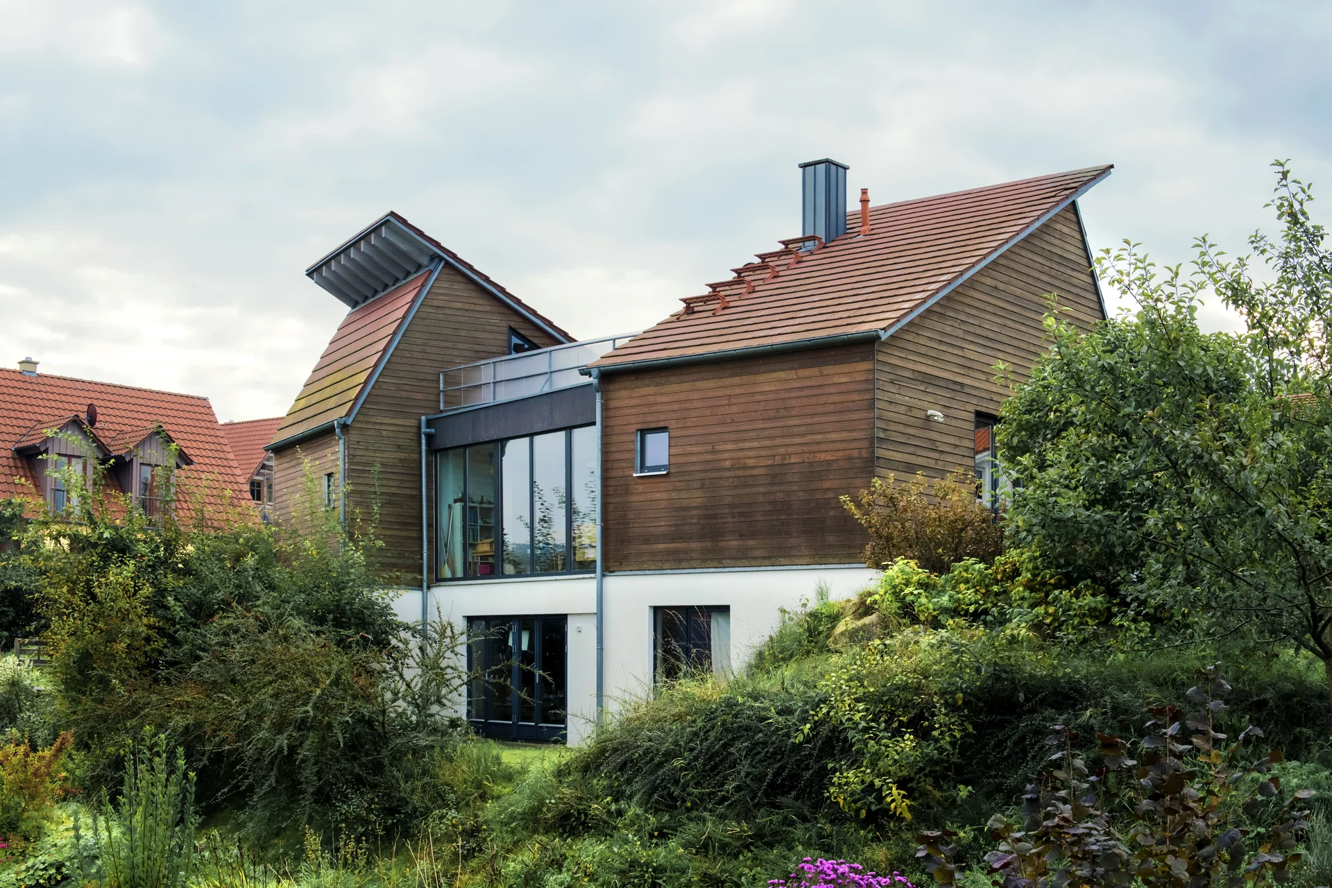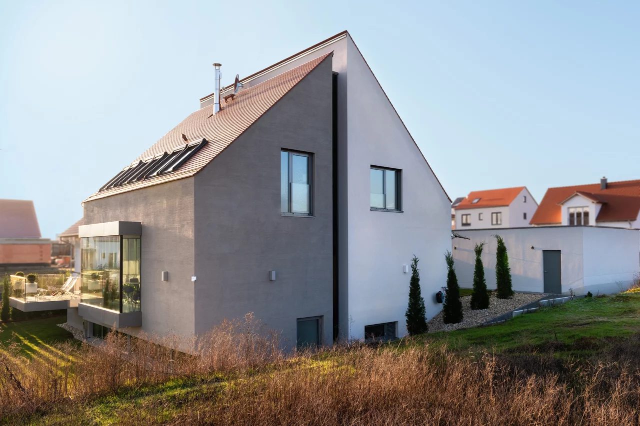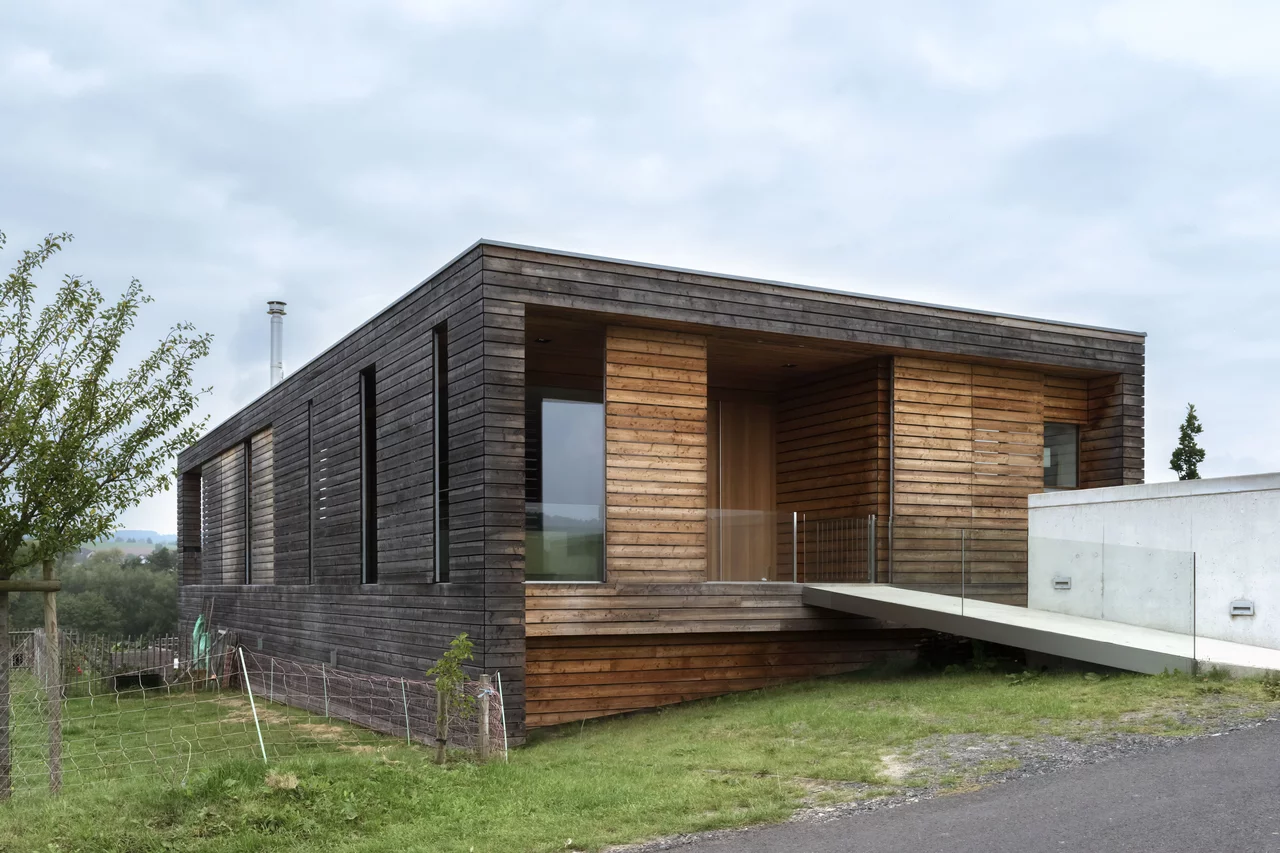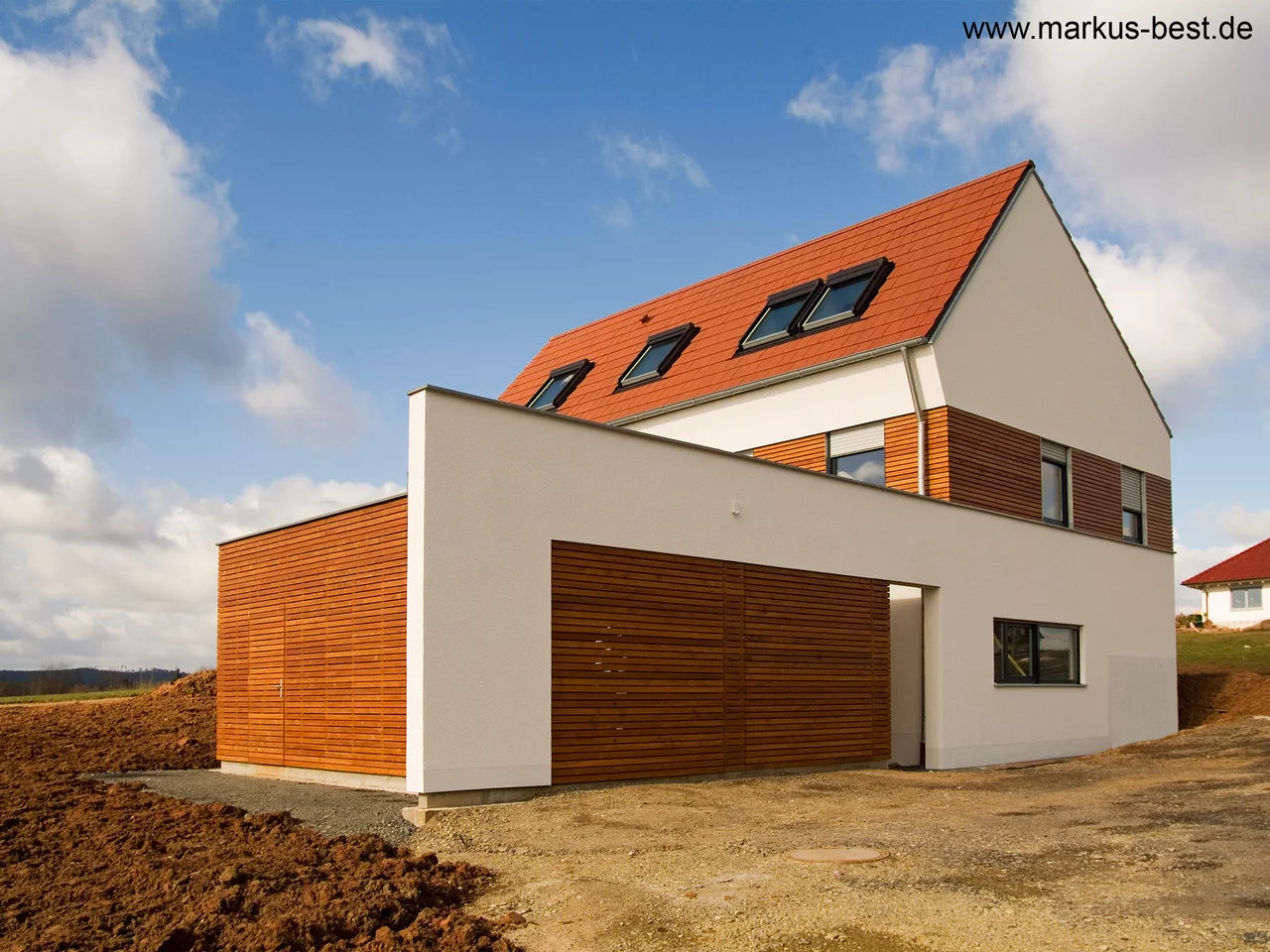 Modernes Wohnhaus in Holzständerbauweise mit Zellulosedämmung