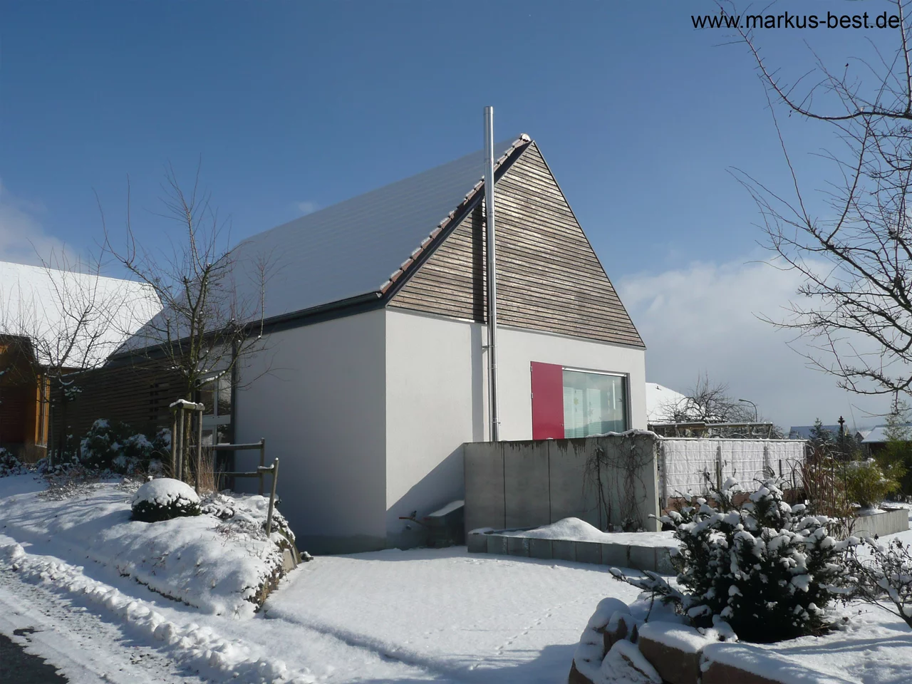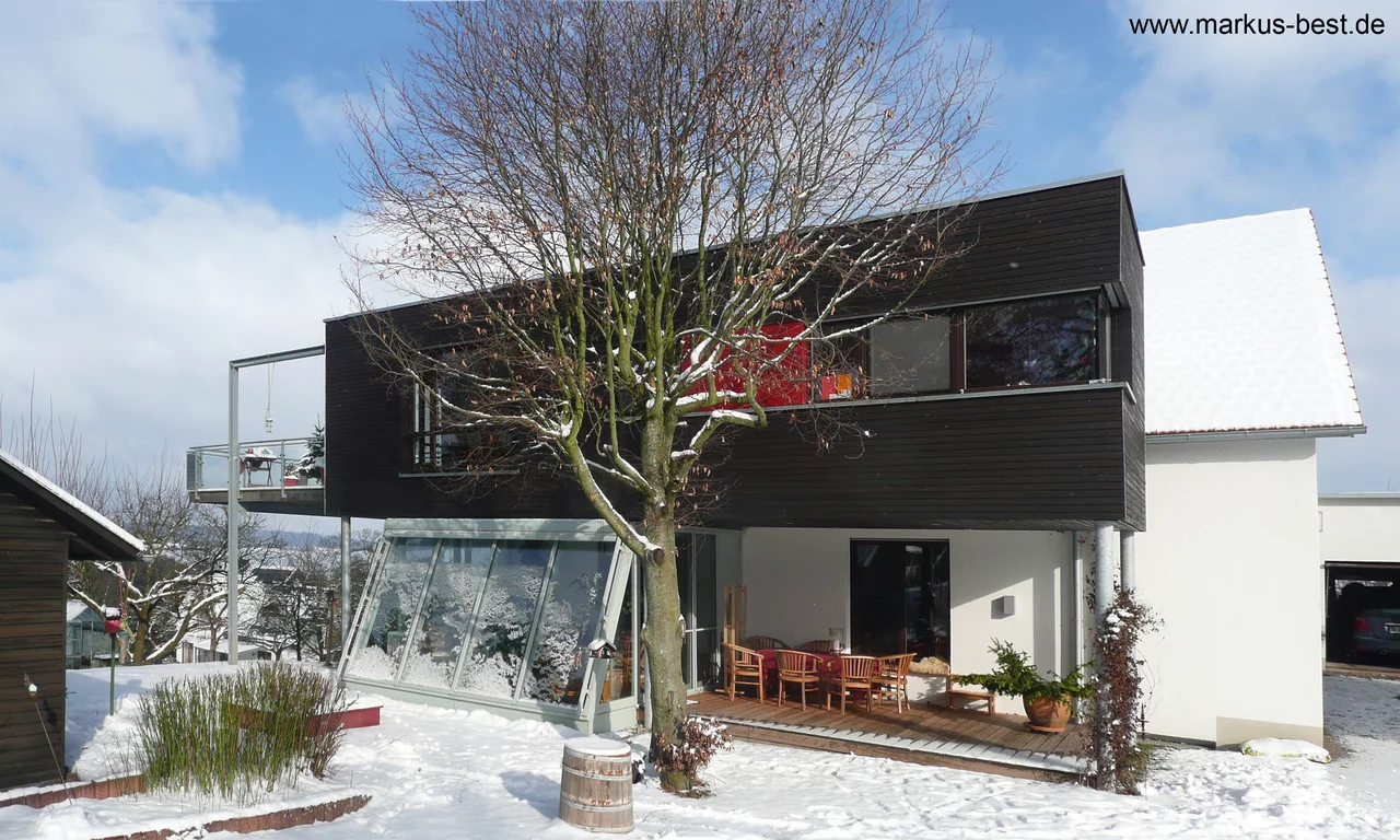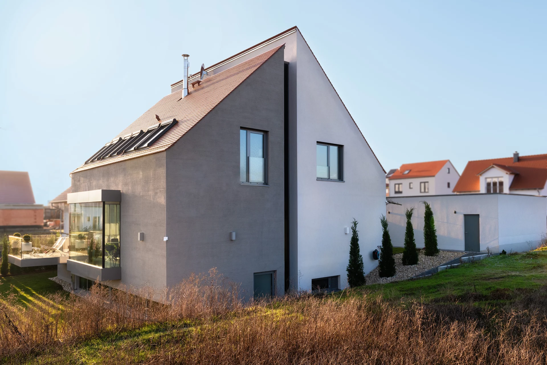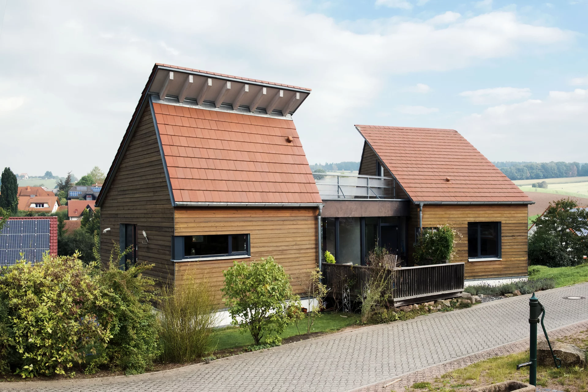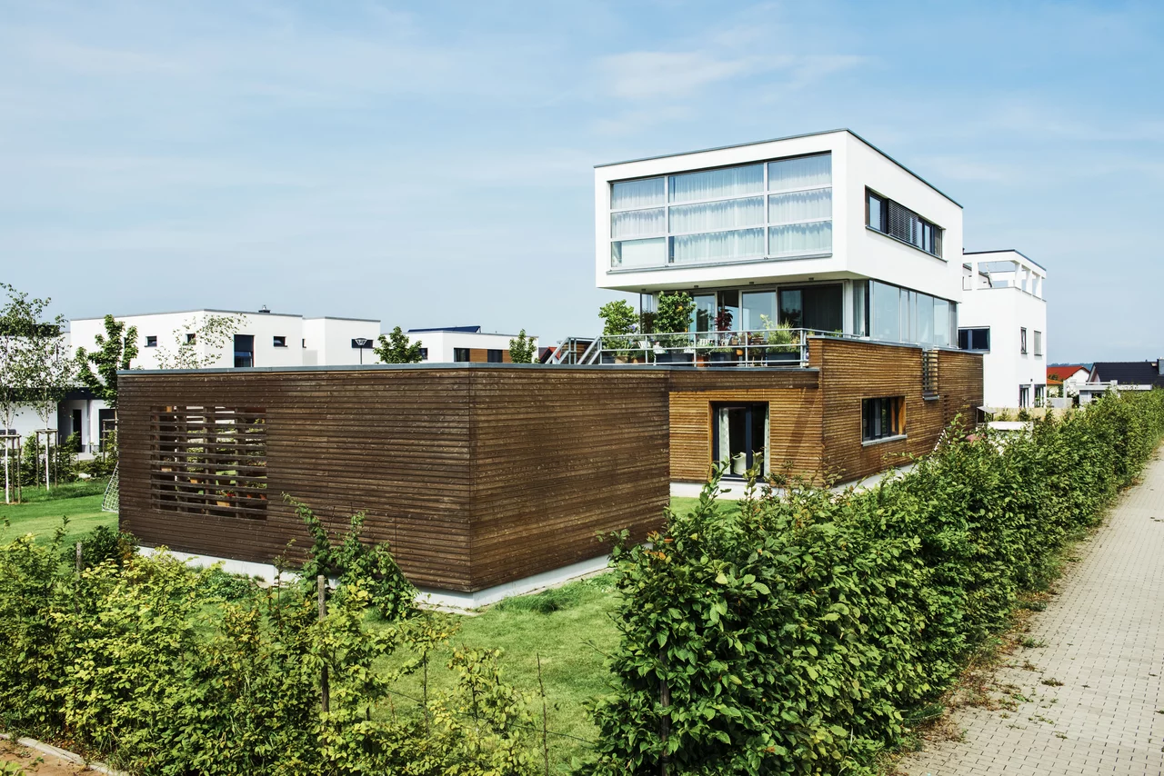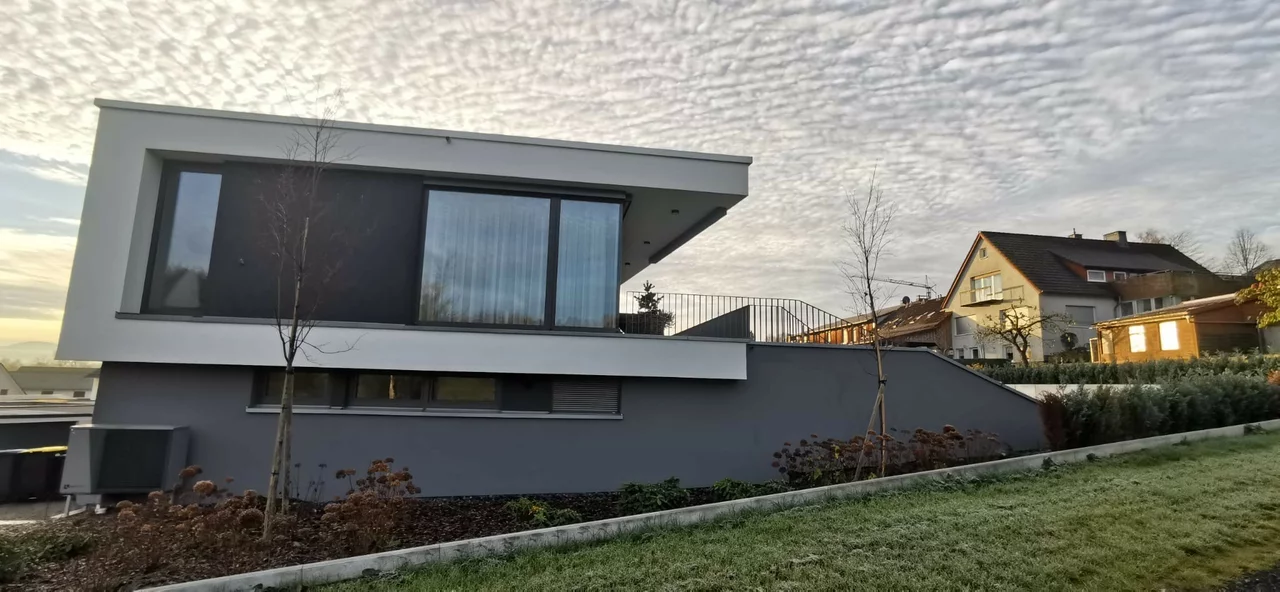 Modernes Wohnhaus in Holzständerbauweise mit Zellulosedämmung