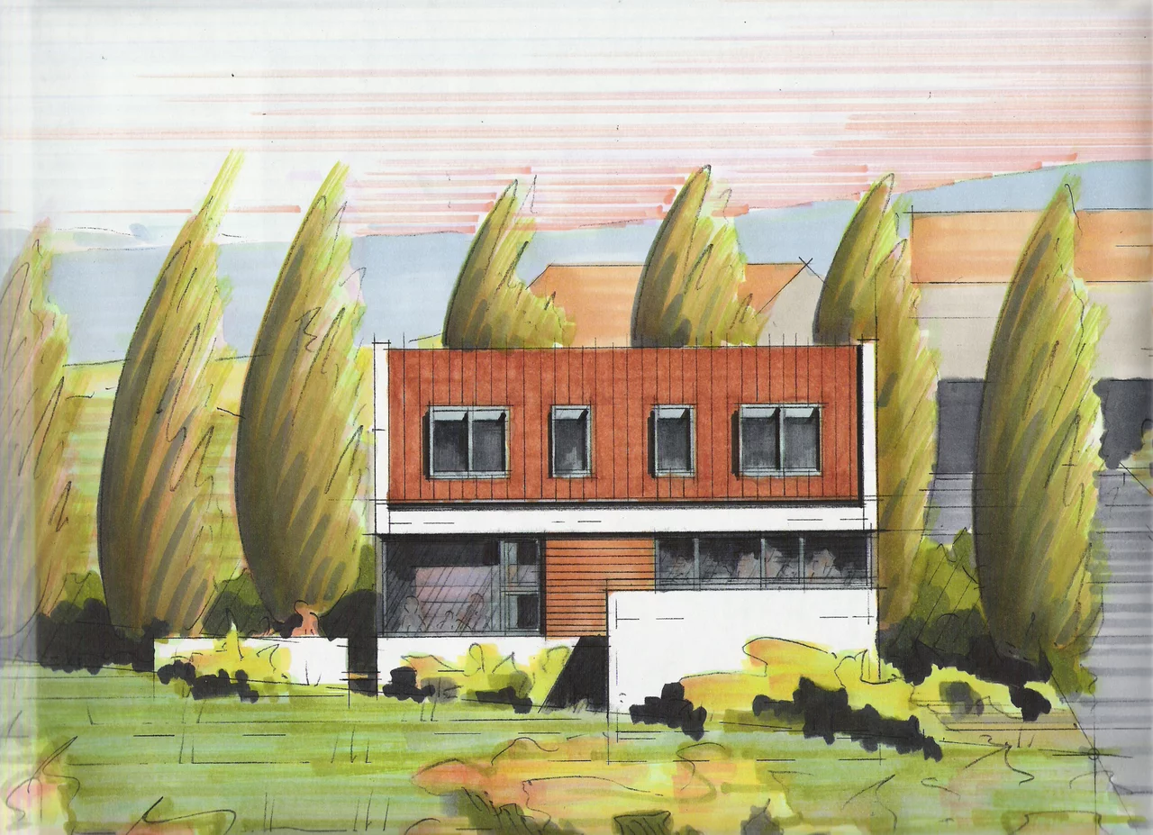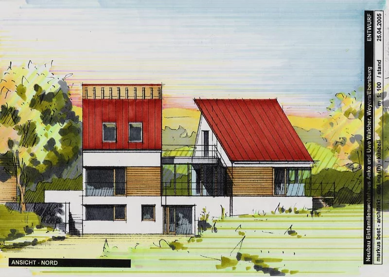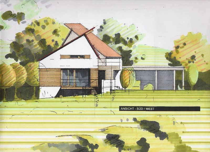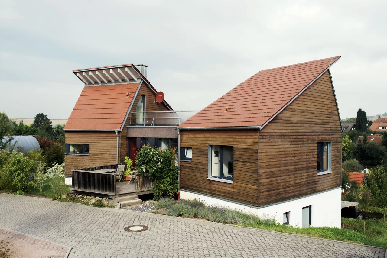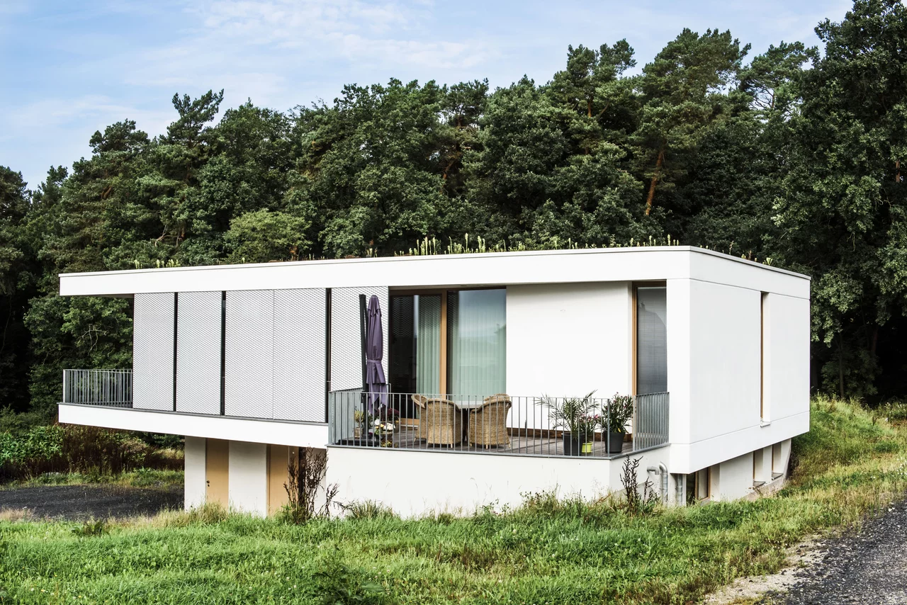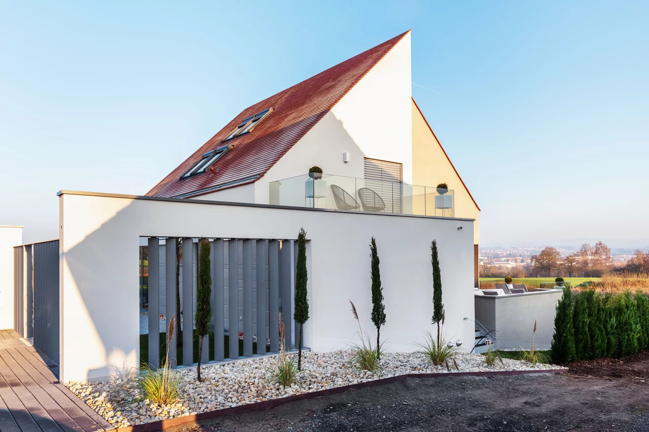 Modernes Wohnhaus in Holzständerbauweise mit Zellulosedämmung