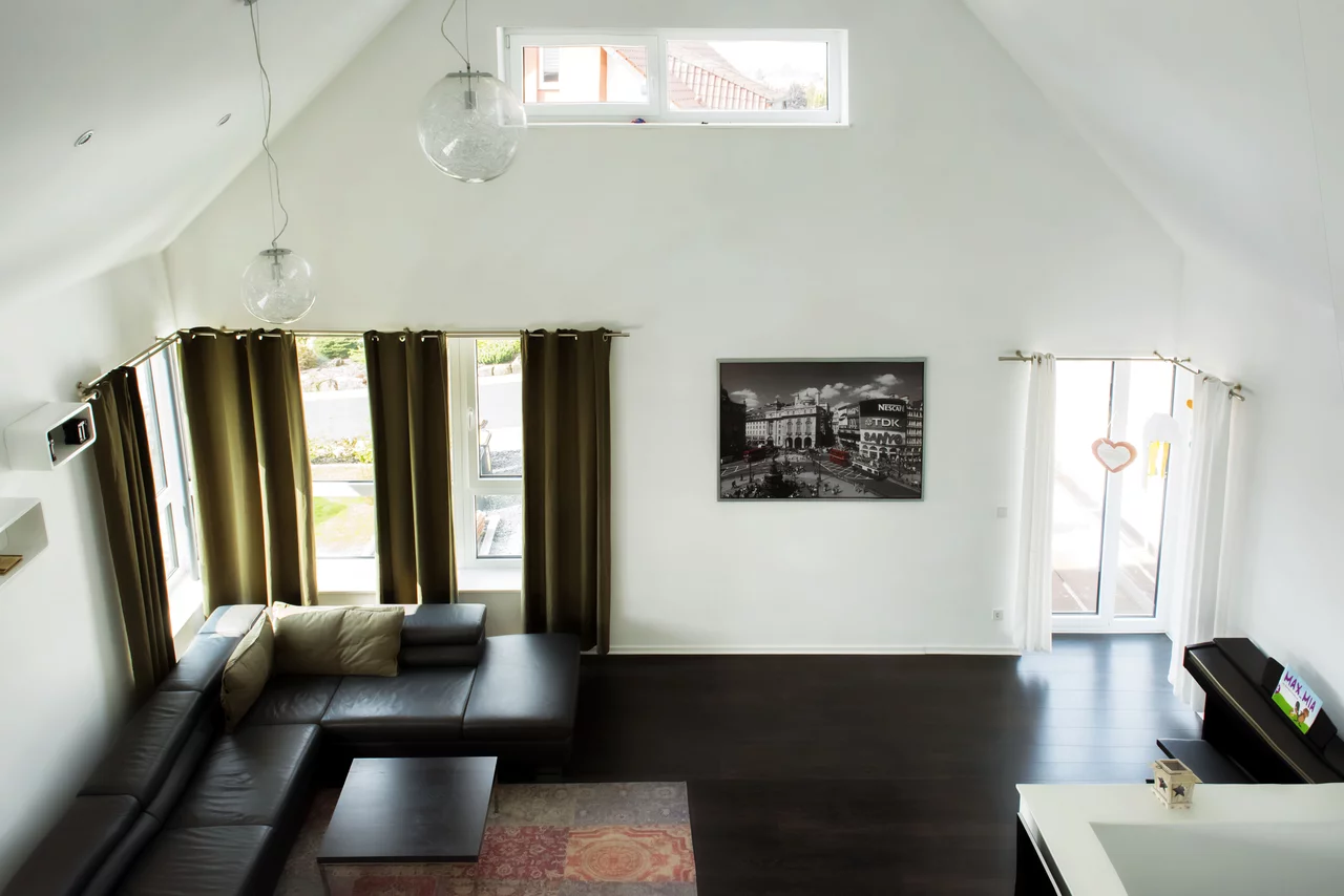 Neben der besonderen Optik überzeugt das Gebäude durch ein helles, offenes Raumkonzept und eine durchdachte Verbindung von Wohnkomfort und Energieeffizienz. Hier trifft individuelle Architektur auf ein Lebensgefühl, das jeden Tag besonders macht.