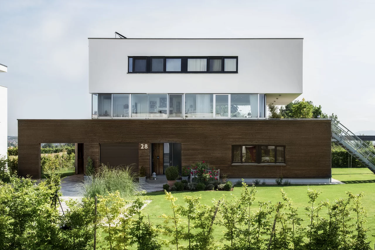 Ein modernes Wohnhaus in Holzrahmenbauweise mit verglaster