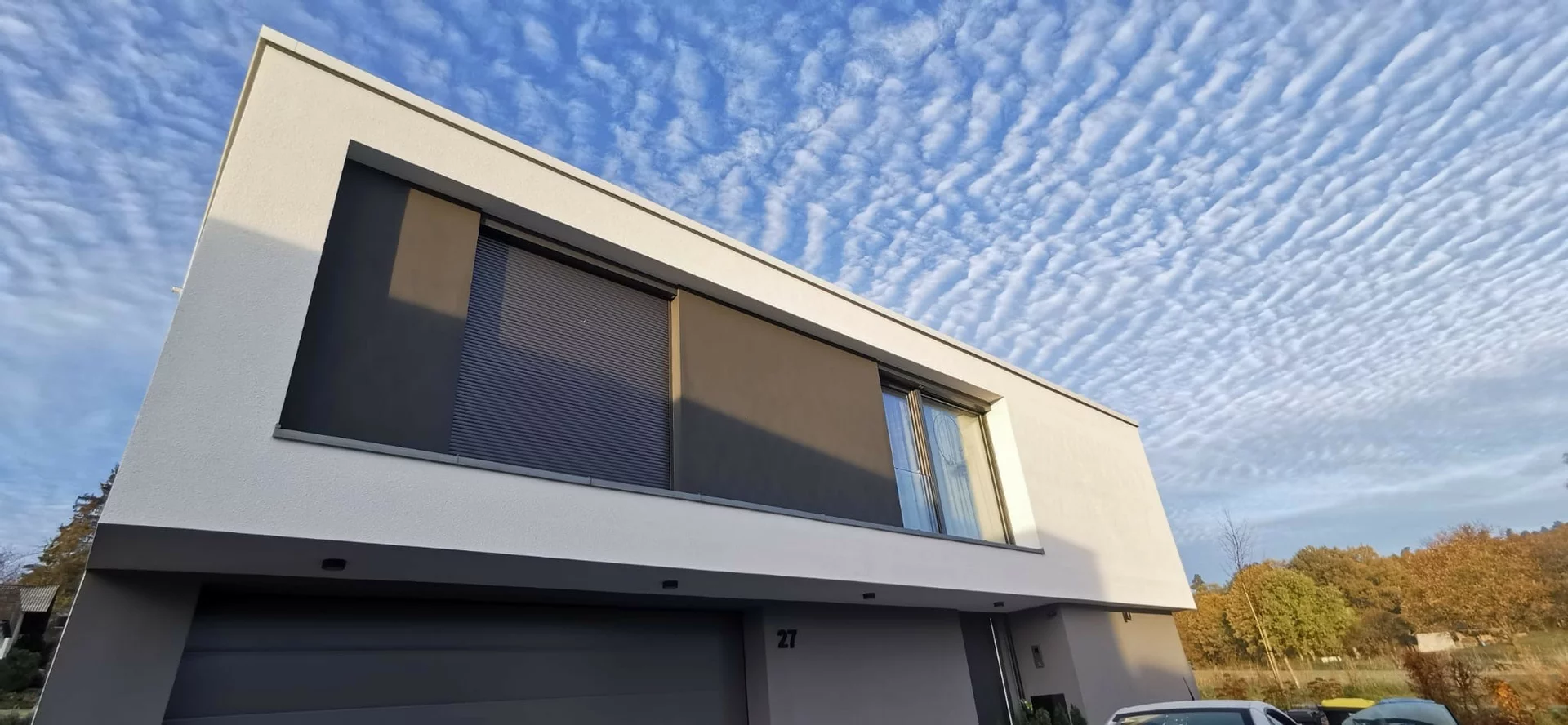Sonnenseite und halbtransparenten Schiebeläden – ein