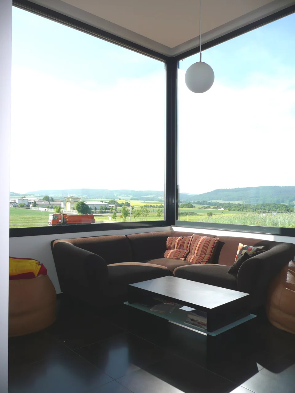 Schwebender Ganzglaserker mit 180°-Rundumblick