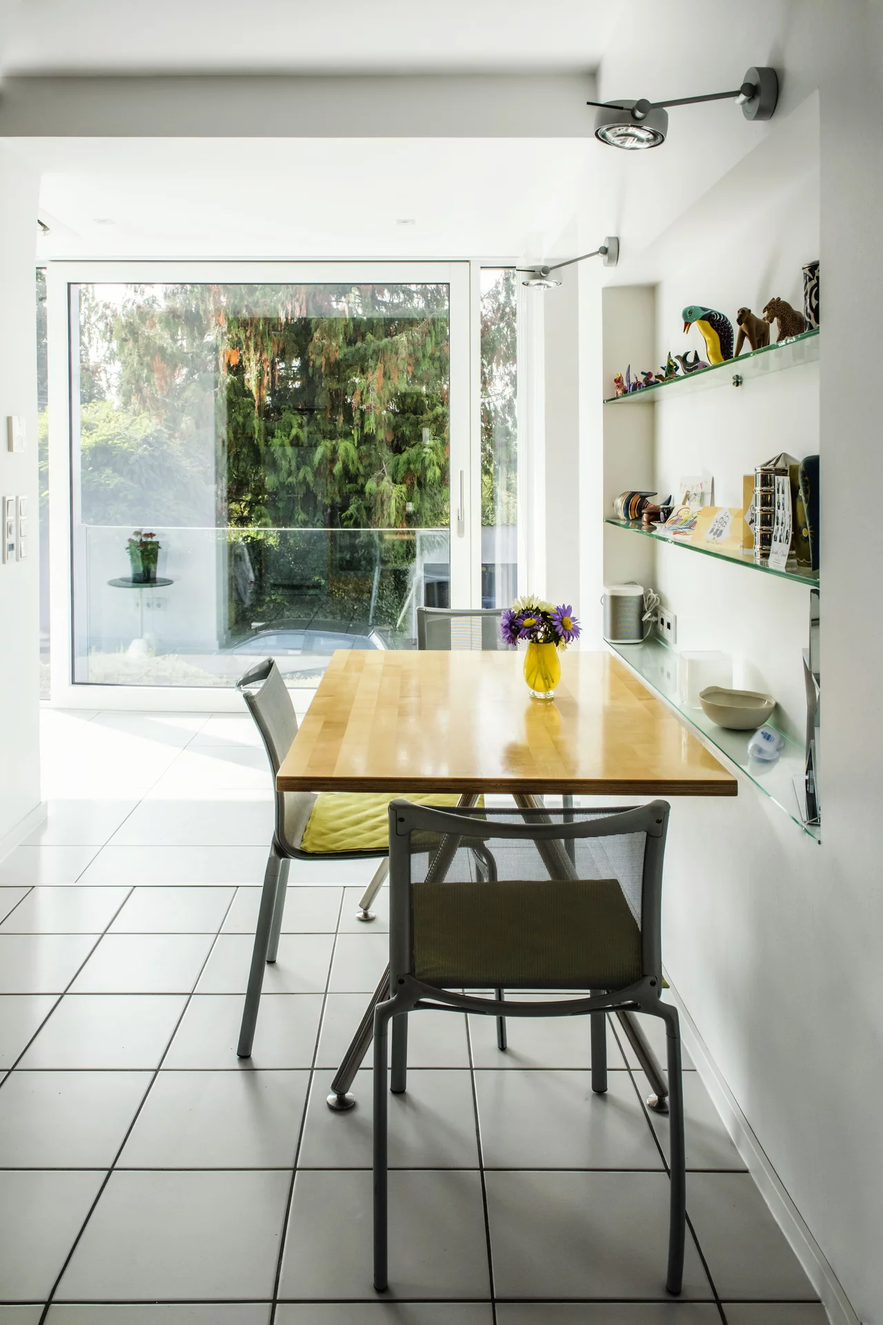 Die Wirkung ist unverwechselbar: Das Haus erinnert an eine elegante Bootsjacht, die am Hang über Fulda vor Anker gegangen ist. Für die Bauherren bedeutet das ein ganzjähriges Urlaubsfeeling – und das direkt zu Hause.