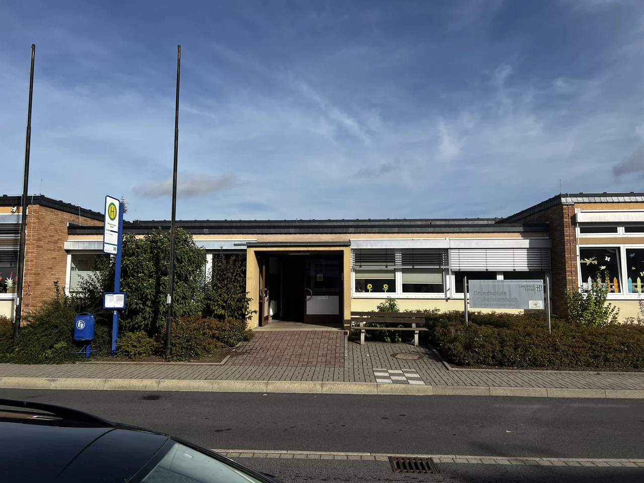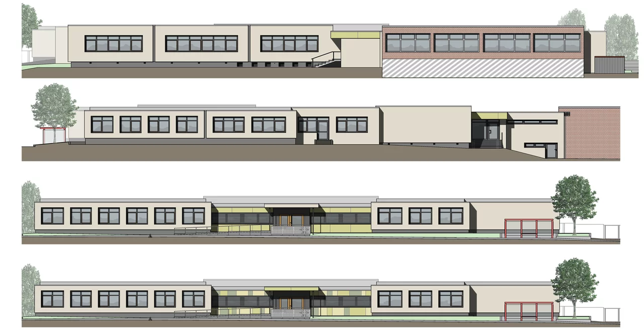 Die Grundschule Michelsrombach wird derzeit umfassend energetisch saniert und funktional erweitert. Neben der thermischen Ertüchtigung von Dach, Fassade und Fenstern entsteht ein barrierefreier Eingangsbereich mit neuer Rampenanlage sowie ein rollstuhlgerechtes WC im Umkleidebereich der Turnhalle.