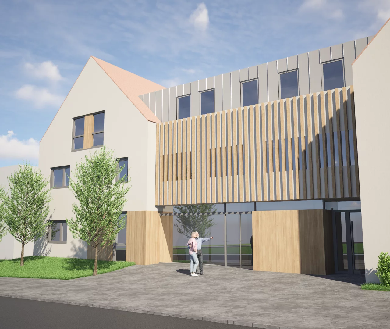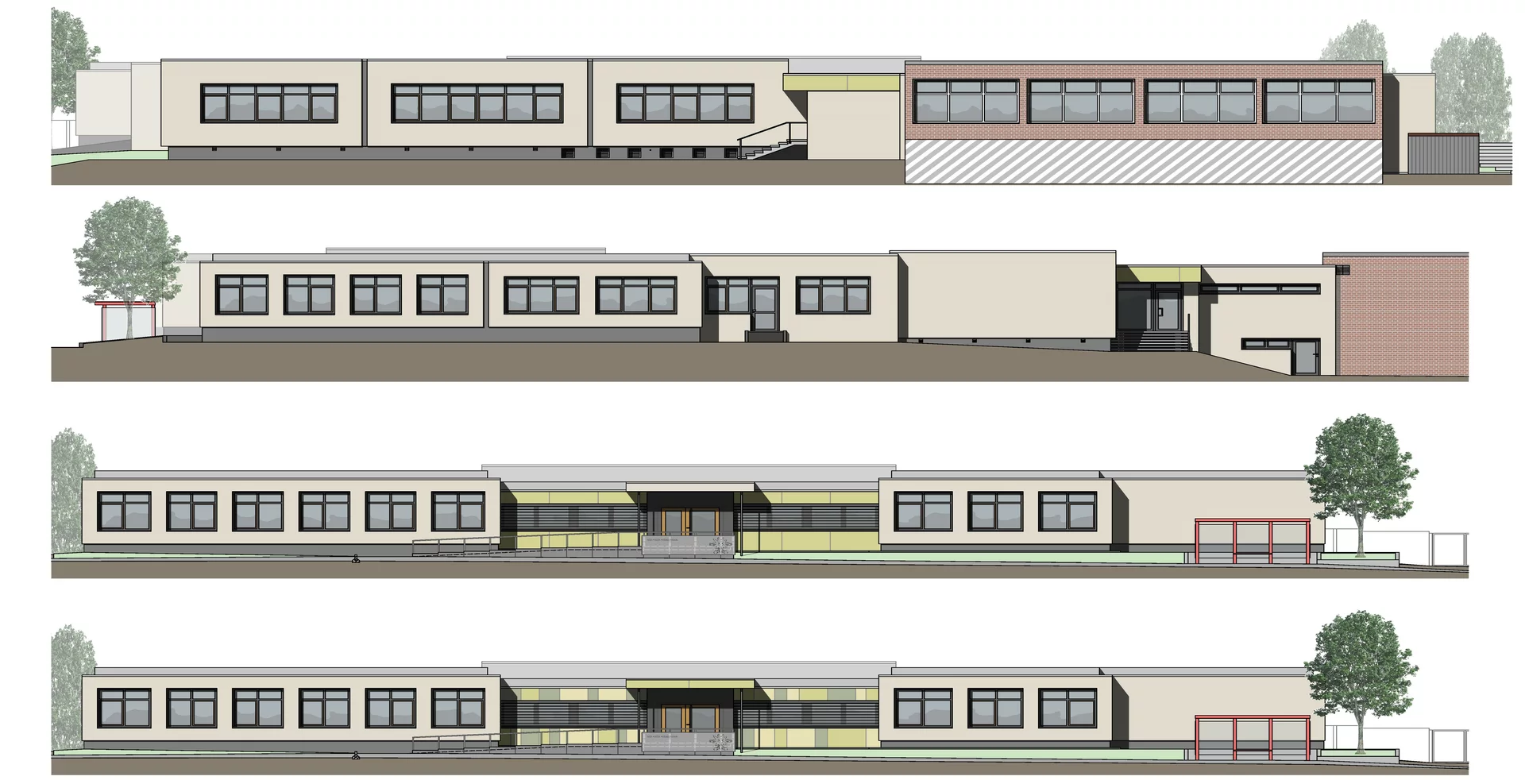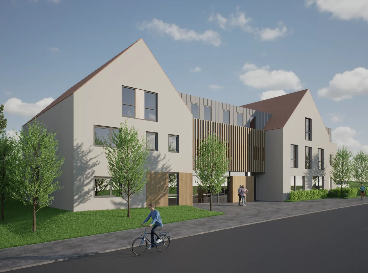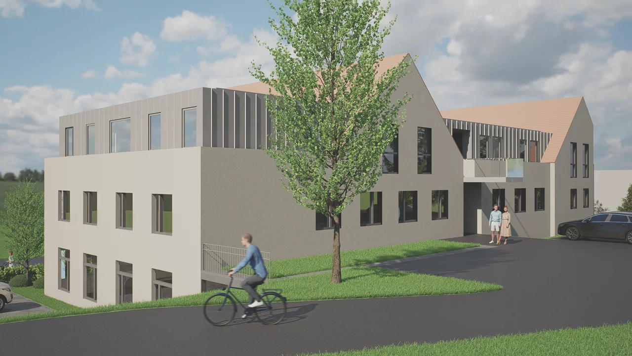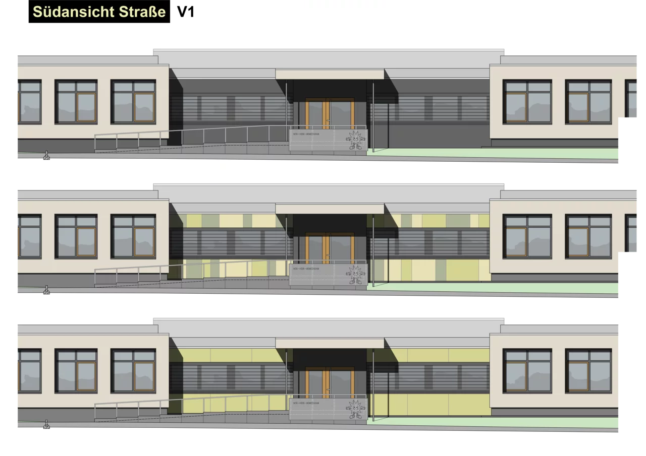 Ein besonderer Schwerpunkt liegt auf dem Ausbau des Ganztagsbereichs, der künftig bis zu 87 Kindern Platz bieten wird. Der neue Speise- und Multiraum mit Aufwärmküche ist für bis zu 60 Kinder in zwei Schichten ausgelegt und lässt sich nach den Mahlzeiten flexibel als Betreuungsraum nutzen. Ergänzend entstehen weitere Räume für Hausaufgaben, Rückzug und freies Spielen.