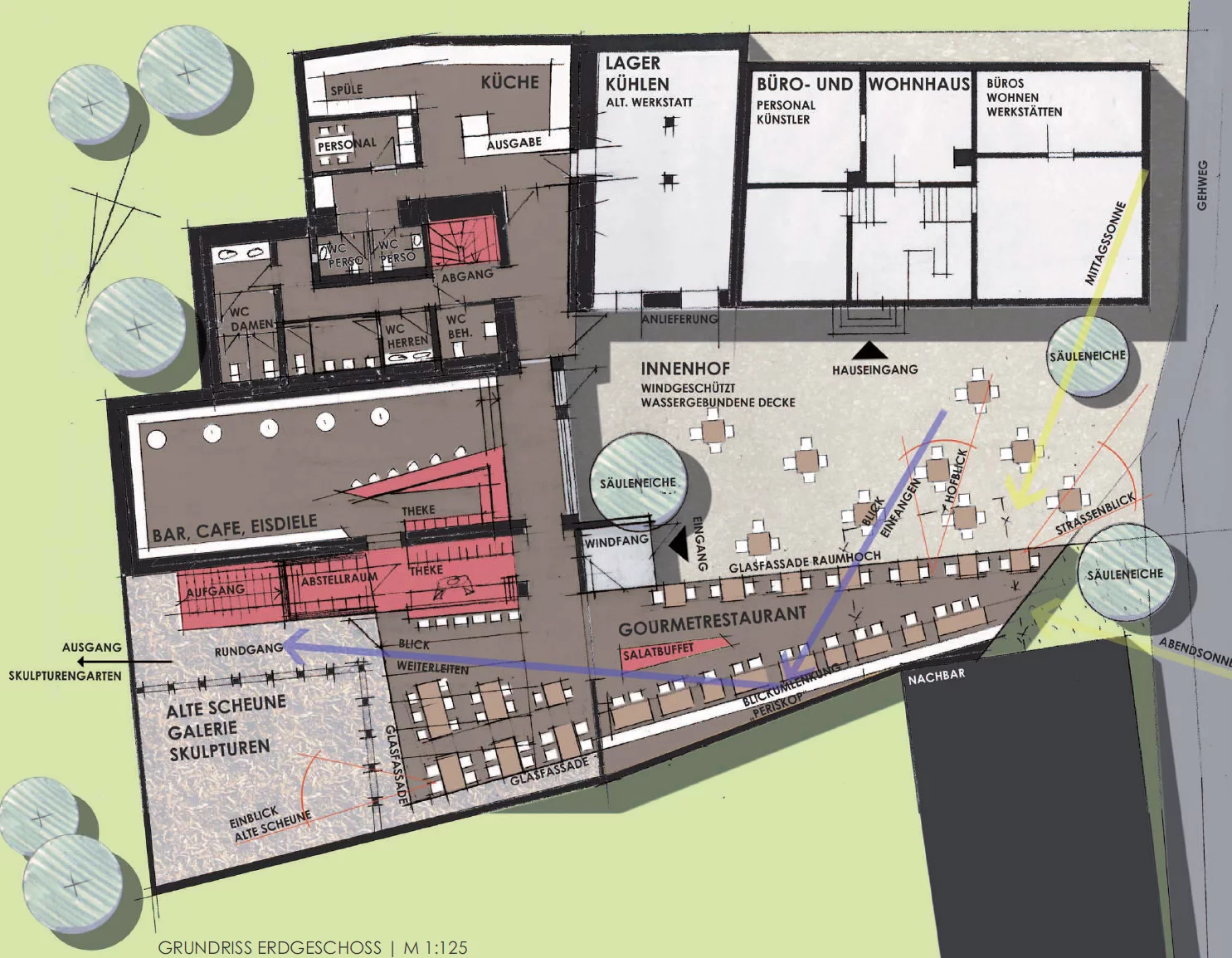 Neuinterpretation der Anlage für Gastronomie, Kunst und Handwerk