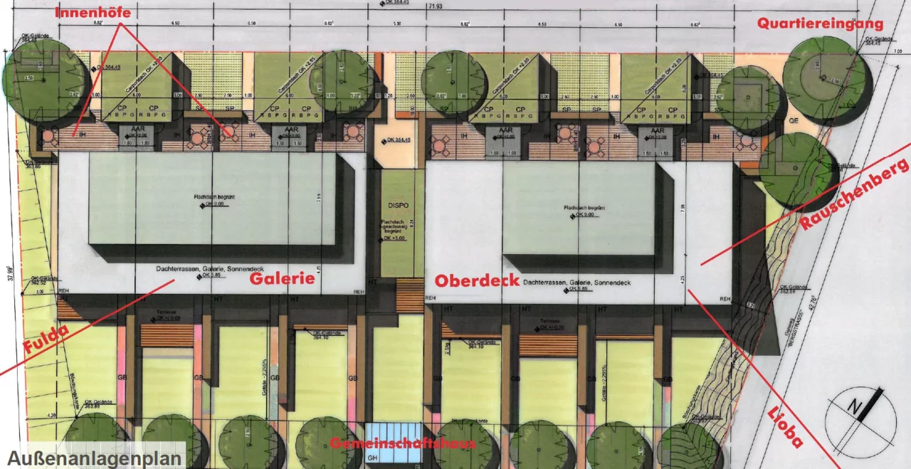 Am Fuß des Rauschenbergs, zwischen Watschelweg und Liede, wurde im Rahmen eines städtebaulichen Wettbewerbs ein Entwurf für ein neues Wohnquartier entwickelt. Das Gelände des ehemaligen Kindergartens „Rauschenberger Rasselbande“ sollte nach dem Abbruch des Bestandsgebäudes einer hochwertigen und ortsangemessenen Wohnnutzung zugeführt werden.