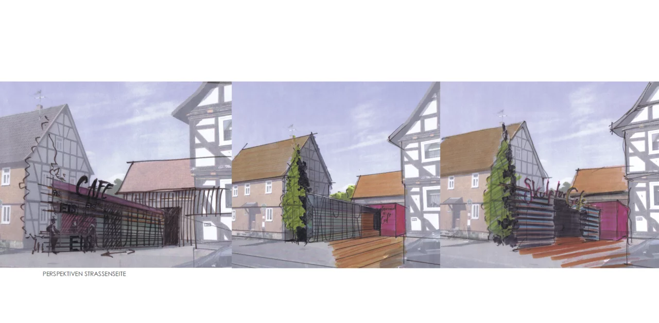 Für das denkmalgeschützte Ensemble im Zentrum von Großenlüder wurde eine Machbarkeitsstudie entwickelt, die neue Nutzungsmöglichkeiten für Wohnen, Arbeiten und Gastronomie im historischen Kontext aufzeigt.